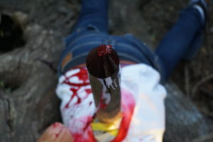 Realistische Notfalldarstellung zwei Darstellern, selbst geschminkt