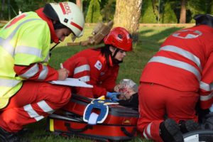 Realistische Notfalldarstellung mit einer Person und vier Darstellern